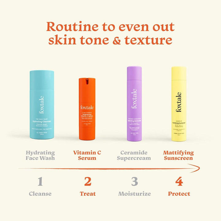 Combats dullness and promotes even-toned skin, this duo actively fights free radical damage and improves elasticity. It also helps prevent sunburn and premature ageing. Try this combo for 3-4 weeks to see visible improvement in dark spots.