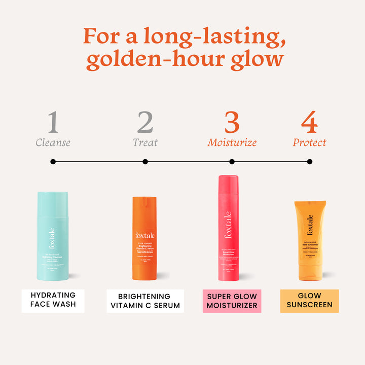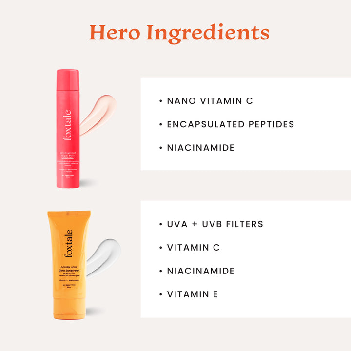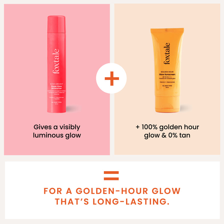 Absolutely! This duo is created keeping in mind that everyday luminous, golden-hour glow that we all aspire to get. And all of this, with just skincare! After cleansing your face, apply a coin-sized amount of the Super Glow Moisturizer and layer it with Glow Sunscreen to illuminate your skin.