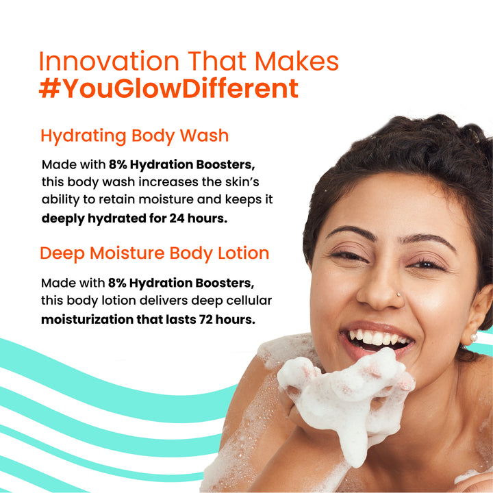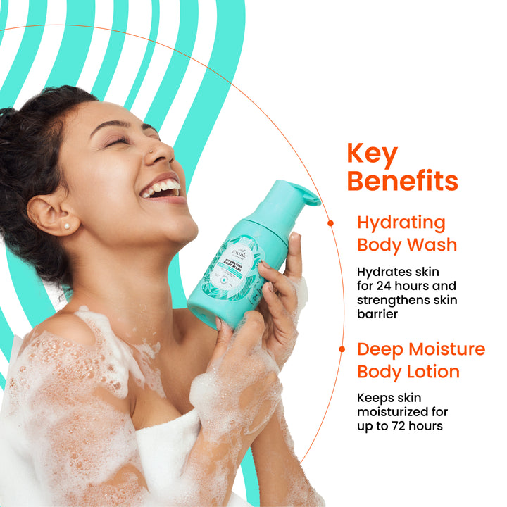 If you want to rejuvenate your dry, dehydrated skin – the Hydrating Body Wash and Lotion combo should be on your radar. With Hyaluronic Acid and Ceramides in the forefront, these innovative formulations ensure sustained hydration to the skin for its soft, supple appearance.