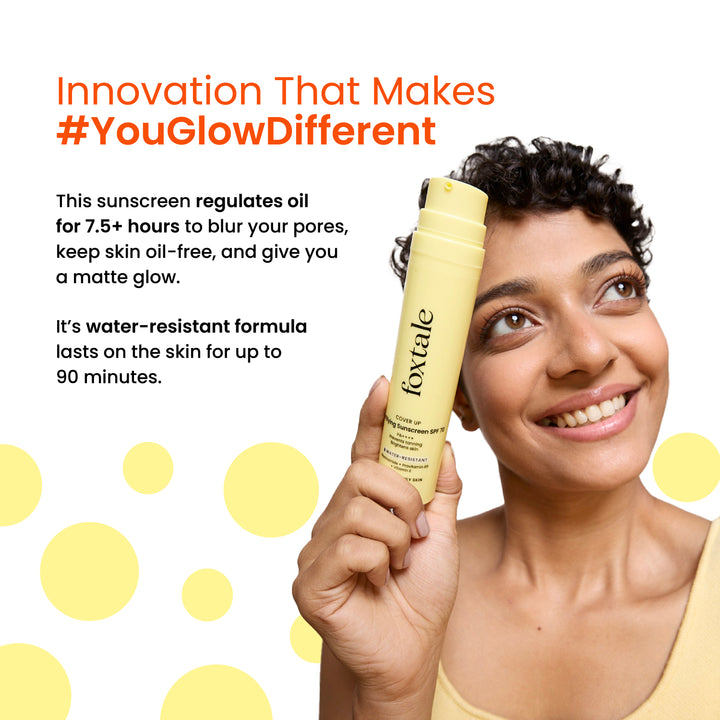 Try Foxtale’s Matte Finish Sunscreen STAT. The lightweight formula contains Niacinamide that reduces dark spots and pigmentation for bright skin.