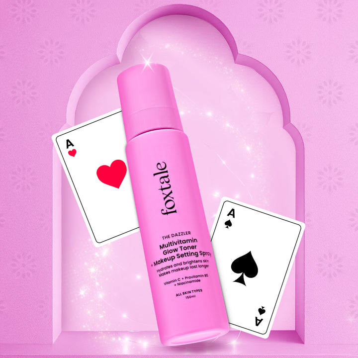 Try Foxtale’s multitasking Glow Toner + Setting Spray, The Dazzler. This alcohol-free face toner carries Vitamin C and Niacinamide that improve your skin’s radiance over time. Moreover, the presence of Provitamin B5 and Betaine forms a Hydra Glow Film – administering multi-level hydration for your skin.