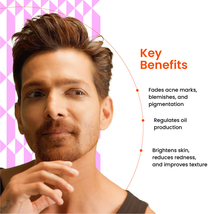 Topical application of the Niacinamide Serum blots shine, regulates sebum production, and prevents clogged pores. It ensures a balanced skin microbiome and reduces the frequency of future breakouts.