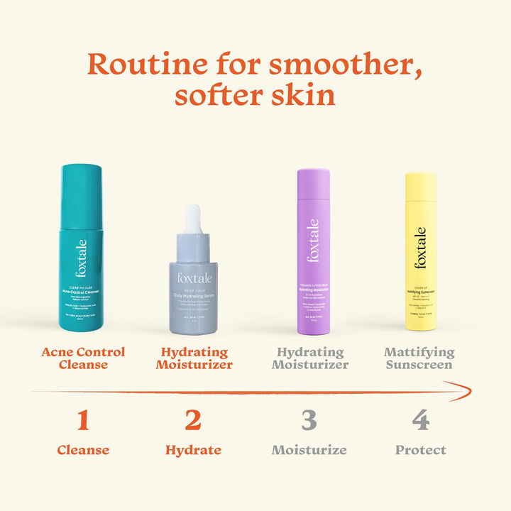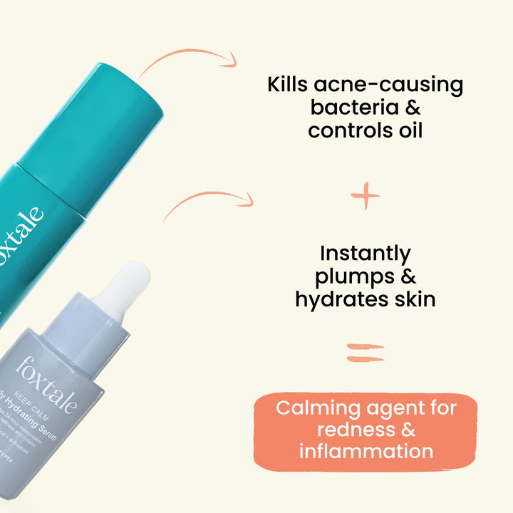 Yes! The Daily Hydrating Serum contains anti-inflammatory and soothing ingredients like Sodium Hyaluronate, Alpha Bisabolol, Aquaporin boosters and Betaine which will help calm acne-related redness and irritation. The cleanser features Hyaluronic Acid and Alpha Bisabolol which eliminate dryness and control inflammation.