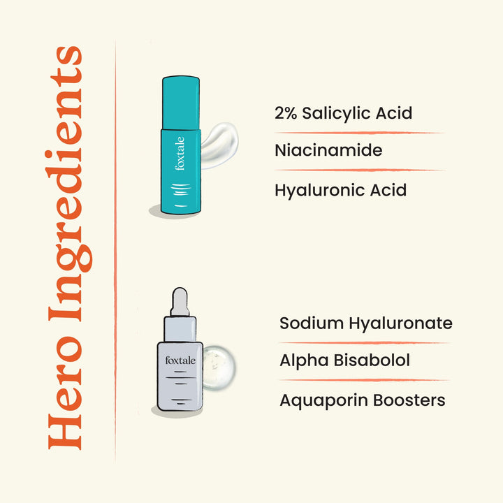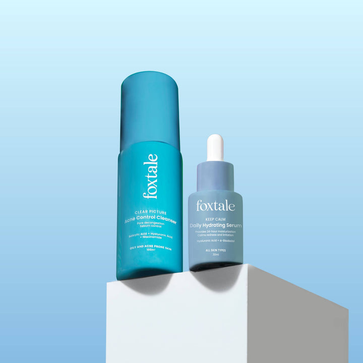 If you have skin that’s oily and prone to acne, this duo will help in reducing acne while also keeping oil under control. The Acne Control cleanser is powered by hero ingredients like Salicylic Acid, Niacinamide, and Alpha Bisabolol which reduce and also soothe the skin. The Daily Hydrating Serum features some of the best hydrating agents like Hyaluronic Acid, Aquaporin Boosters, and Betaine which help the skin retain moisture, and intensely hydrate it for 24 hours.